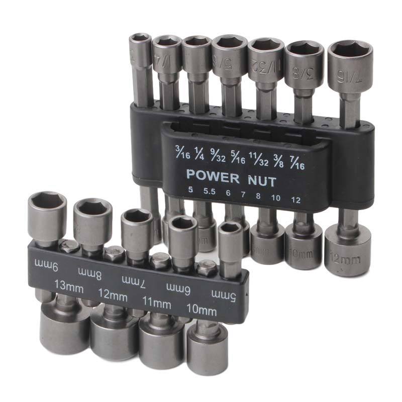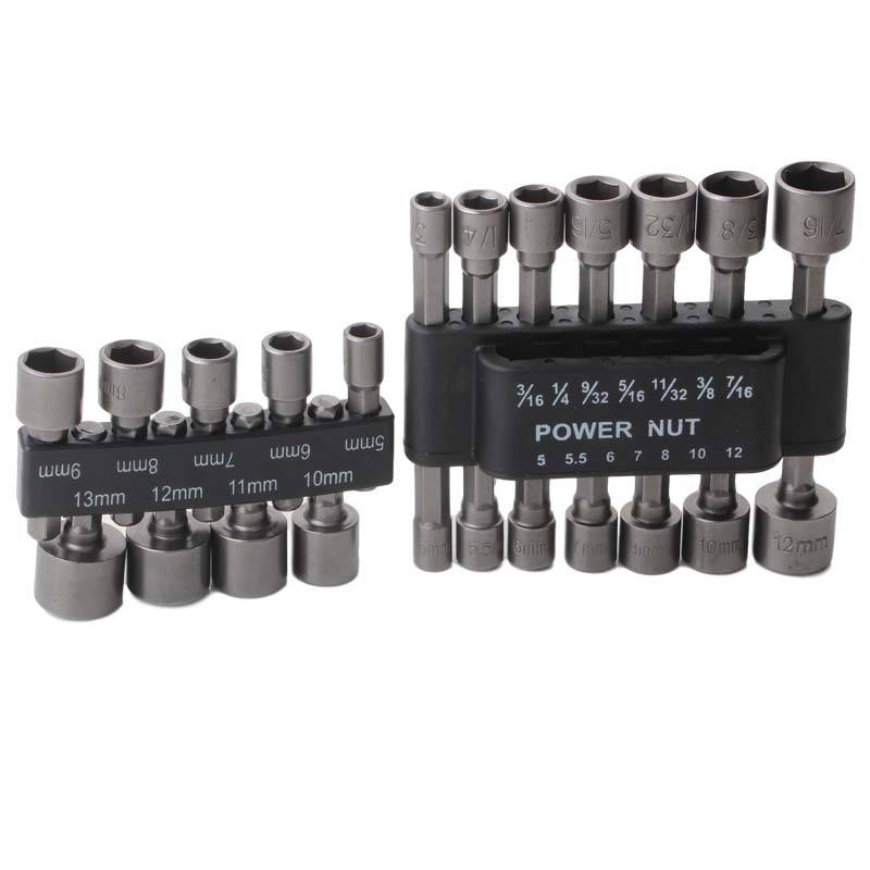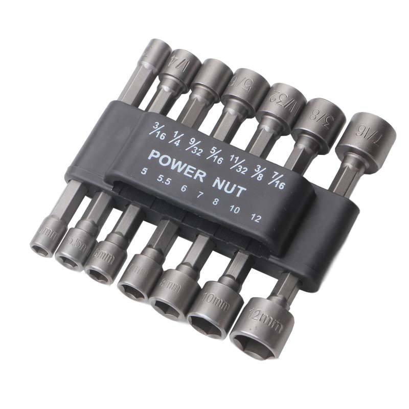 Power Nut Socket Set 5-12mm 3/16-7/16 In Metric Imperial Heavy Duty Socket Wrench Bits For Electric Pneumatic Screwdrivers