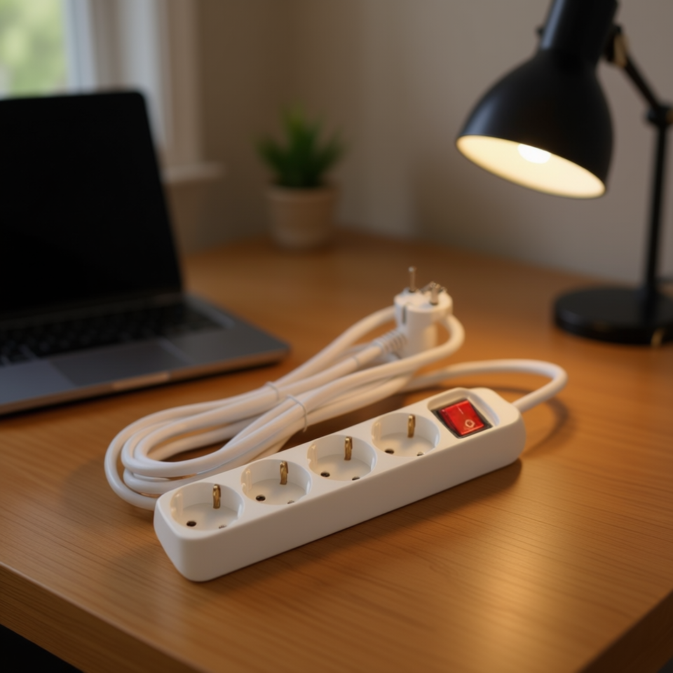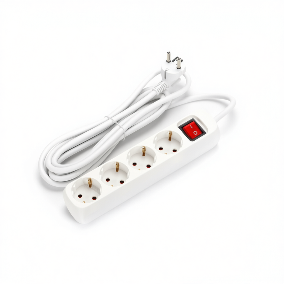 Regleta de Enchufes con 4 Tomas y Interruptor, Cable de 1.5m H05VV-F 3G1.5mm, Uso Residencial