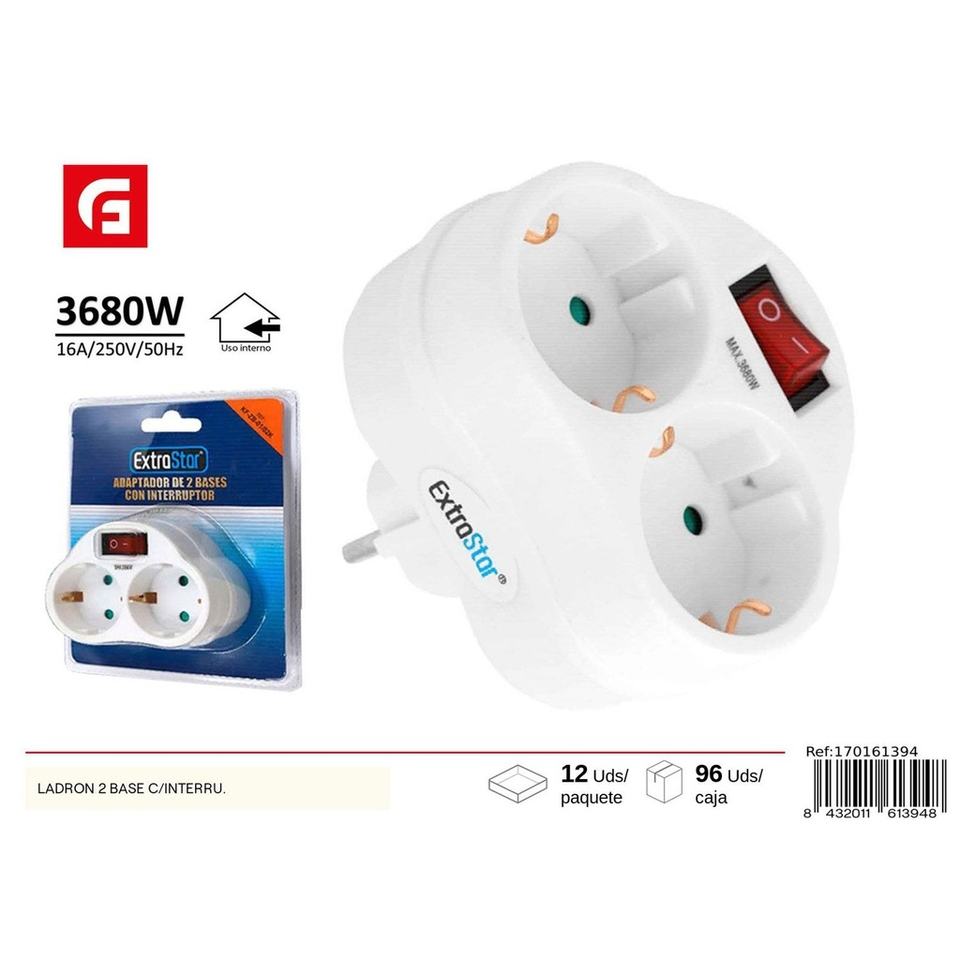 Regleta con interruptor, 2 enchufes para múltiples dispositivos
