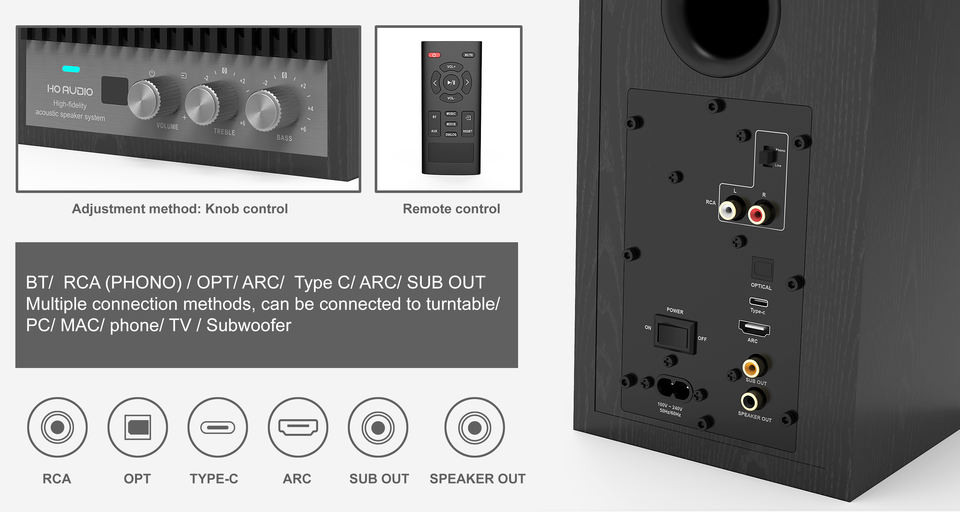 Bluetooth,HDMI ARC,Type-C,SUB OUT,RCA(PHONO),optical