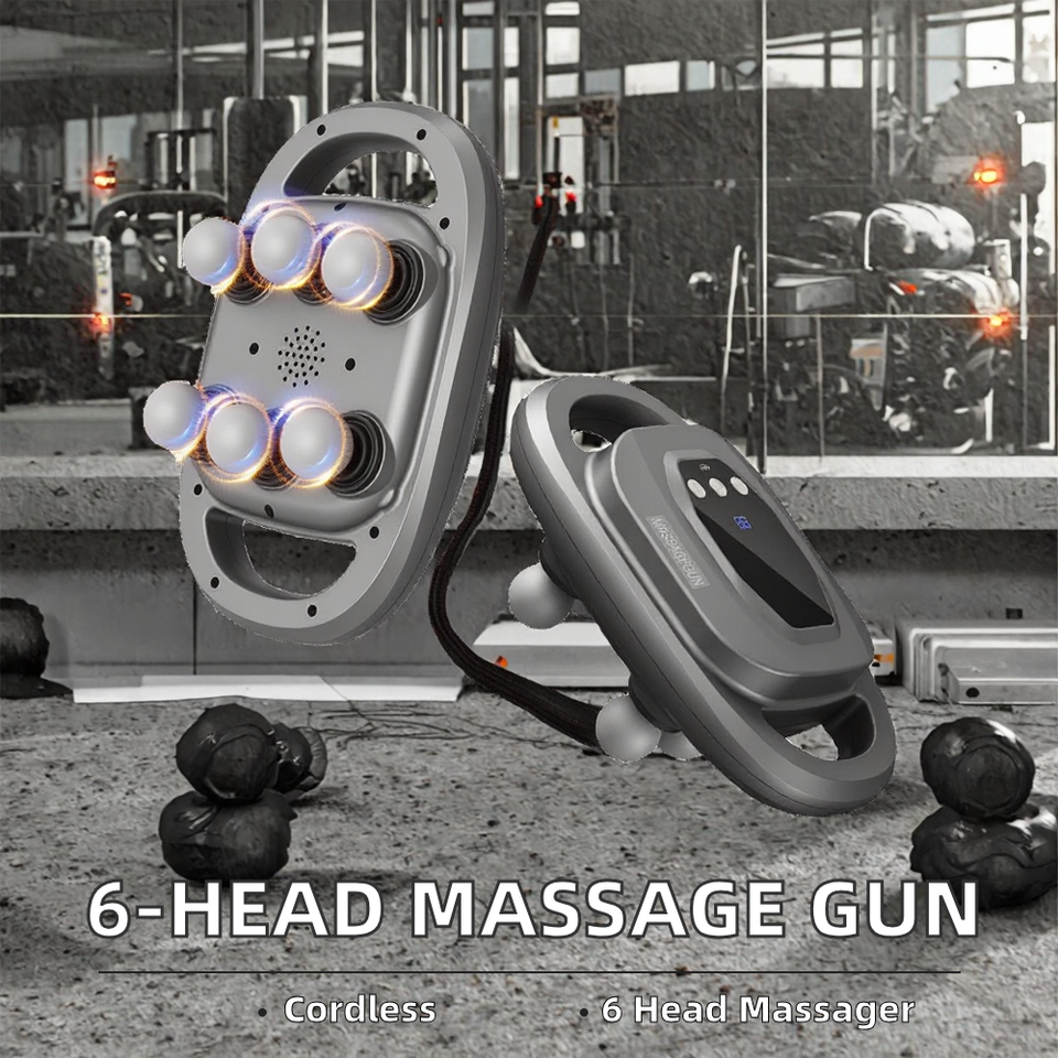 Potente Pistola de Masaje Eléctrica Inalámbrica de 6 Cabezales Beirelax-F80 para Terapia de Fascia, Espalda y Hombros, Uso Corporal