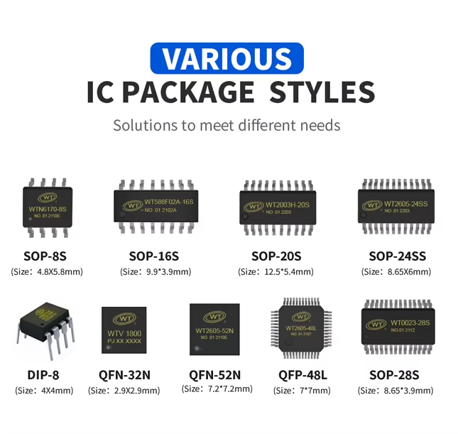 Función potente WT588F02B Chip de voz El programa de control principal y los datos del flash se pueden borrar y reescribir Chip de sonido grabable