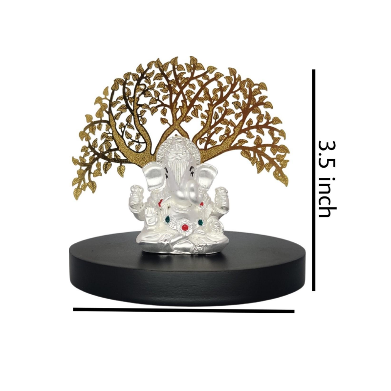 Potente estatua de Hanumanji Idol colocada debajo del árbol artesanal de Metal de color dorado en tamaño pequeño para la decoración del templo del hogar Puja Room