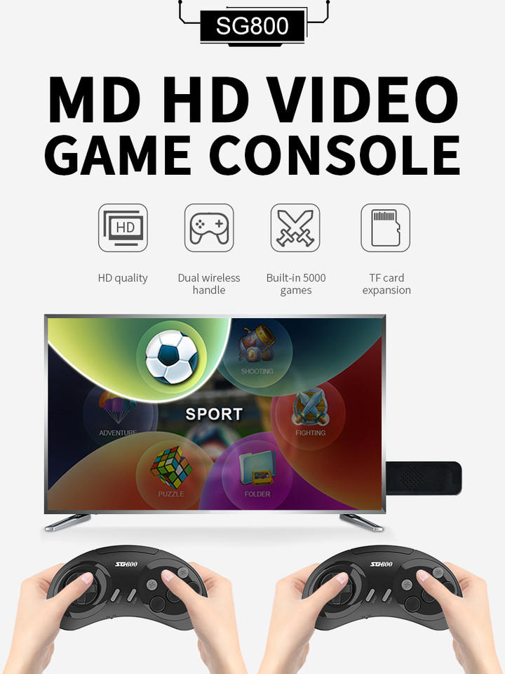 Powkiddy 2,4G Controlador dual inalámbrico Gamepad 128GB TF Expansión HD TV Consolas de videojuegos para Mega Drive 5000 Juegos incorporados