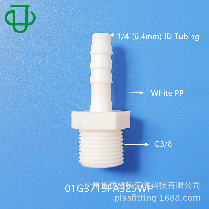 Conector Recto de Plástico PP con Rosca Externa G3/8 de Tres Vías para Conexión de Tuberías de Fluidos y Gases