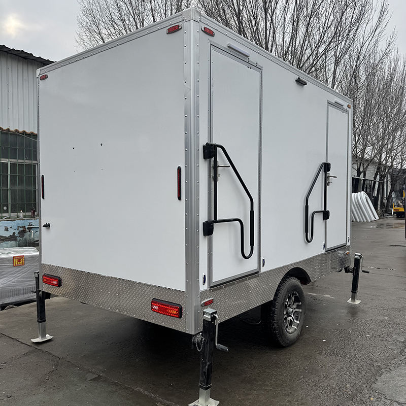 Práctico y en Oferta: Remolque Sanitario Portátil para Exteriores con Doble Descarga, 2 Cabinas, para Camiones, Uso Temporal, Móvil, para Adultos, Campamentos y Emergencias