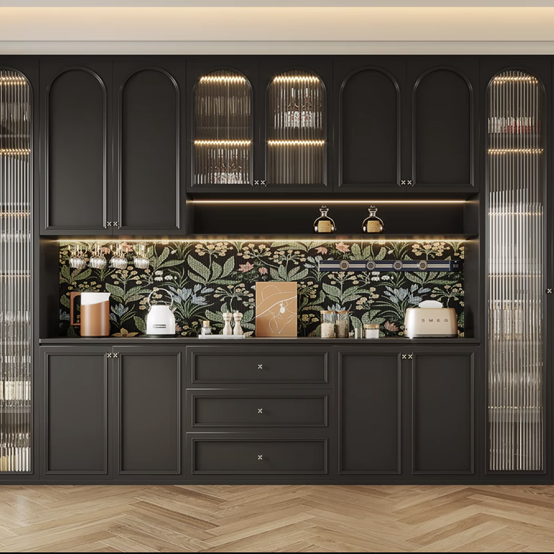 Mueble de Cocina Modular Práctico, Gabinete Lateral para Vino con Vidrio, Personalizable, Garantía de 5 Años, Compatible con Todo Tipo de Herrajes