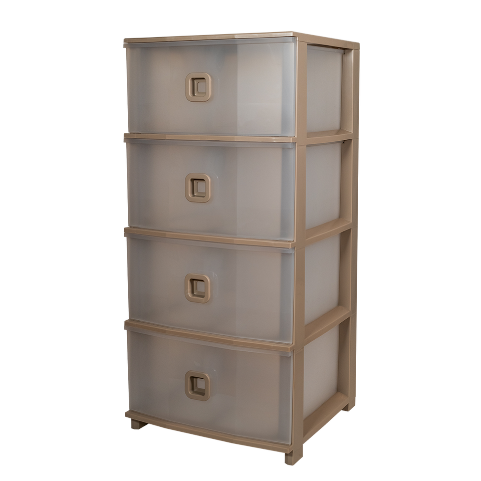 Pratika Plus - Mueble de Almacenamiento con 4 Cajones, 375x370x800mm, Color Taupe, Plástico PP, para Organización del Hogar y Oficina
