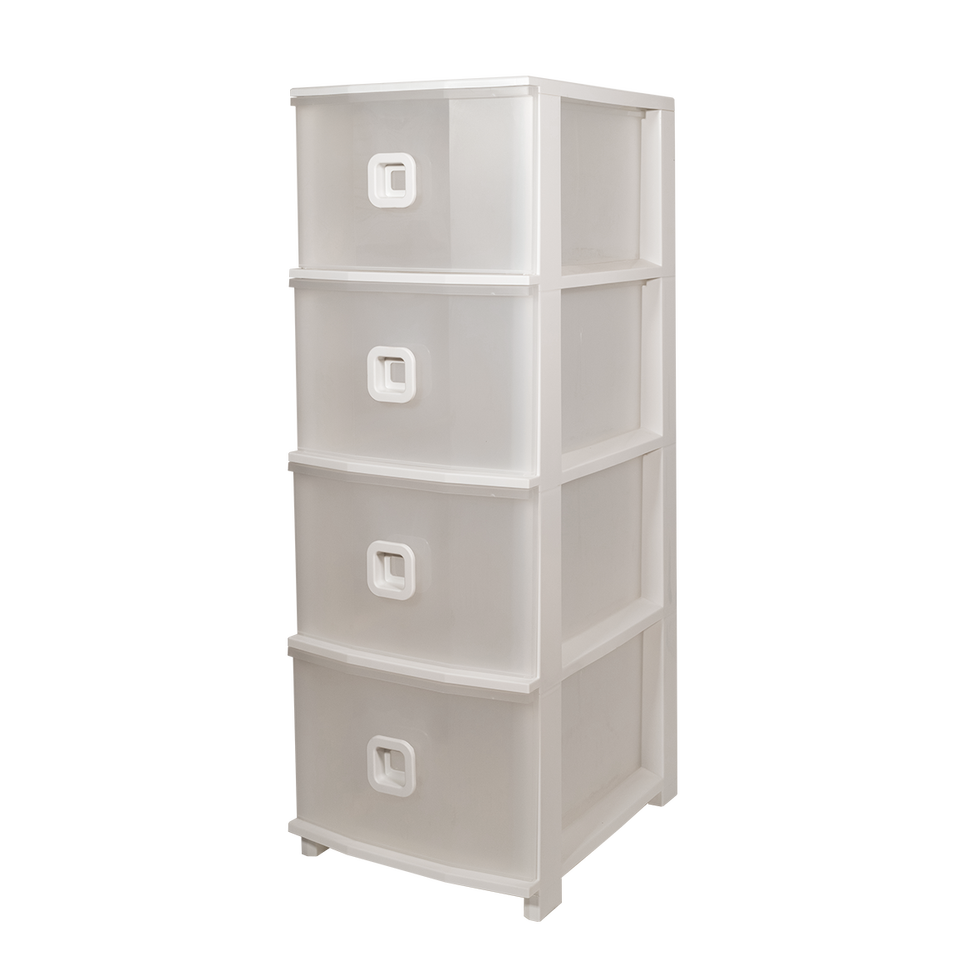 Pratika Slim Plus, Mueble de Almacenamiento con 4 Cajones, Blanco, 375x285x800mm, Organizador de Plástico