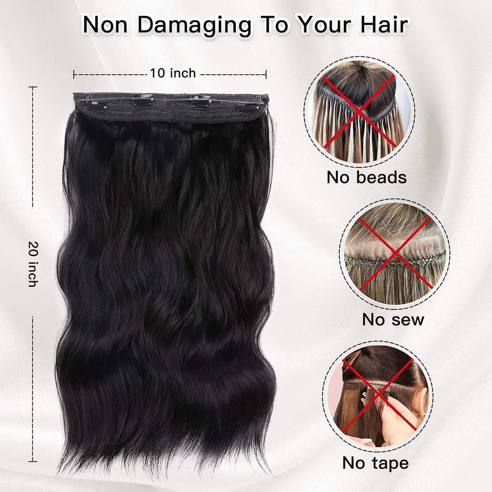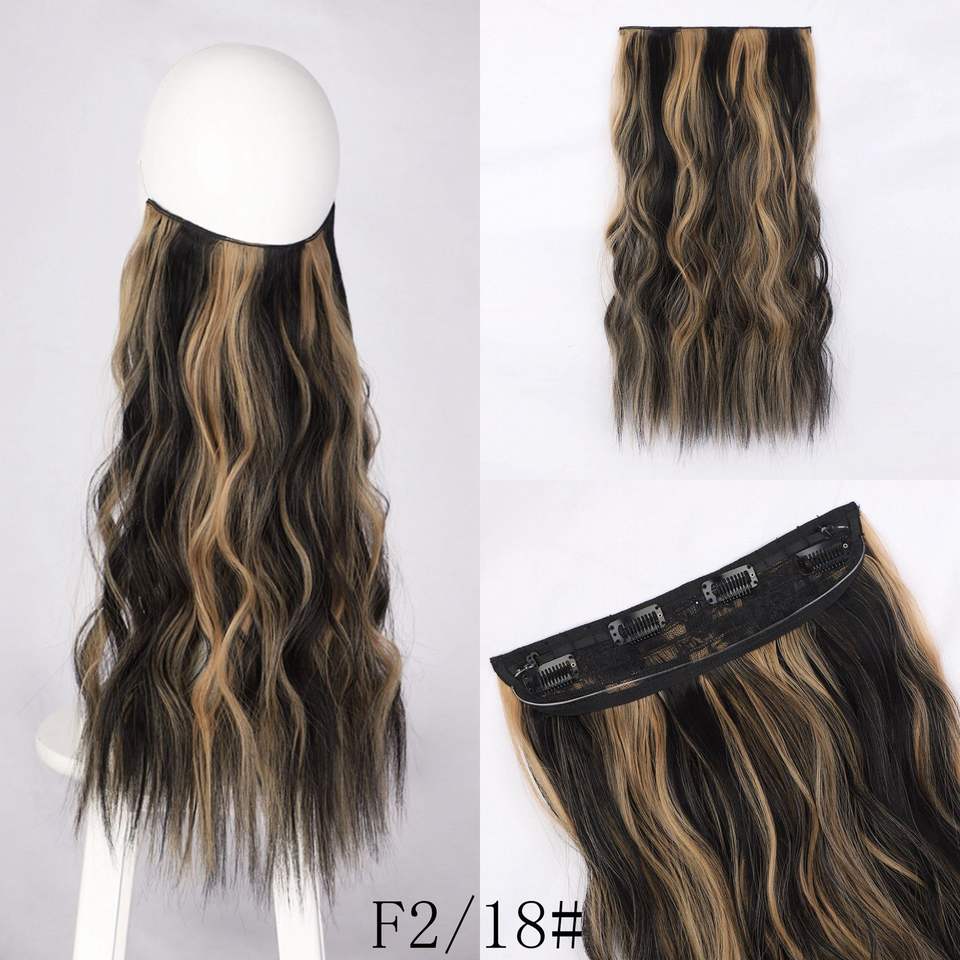 Línea de Pesca Pre-Adherida de Una Pieza Ajustable Estilo Europeo Americano Ondas de Agua Cabello Largo Rizado Extensión Invisible con Clip