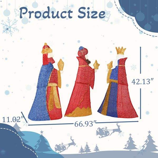 Set de Decoración Navideña 2D Preiluminado, Juego de 3 Reyes Magos con Regalos, 80 Luces LED Blancas Cálidas