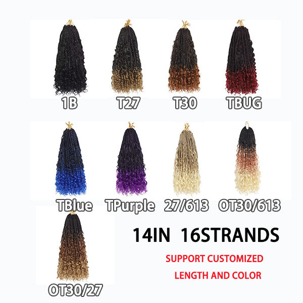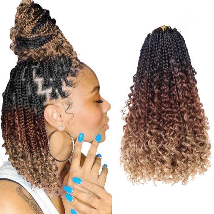 Extensiones de Cabello Sintético Pre-Enrrolladas, Trenzas Boho Box Braids, Extensiones de Cabello de Ganchillo con Puntas Rizadas
