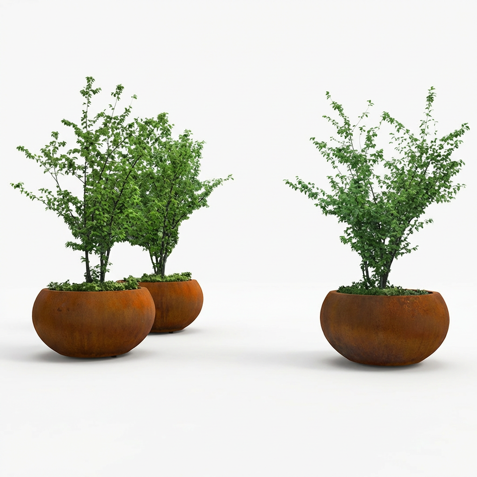 Jardinera de acero Corten preoxidado con tratamiento de fábrica, maceta de acero resistente a la intemperie, sin efecto oxidado ni desagüe de agua.