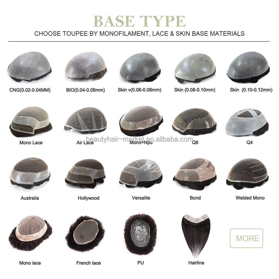 Base de piel fina con bucle en V, cabello 100% humano Remy