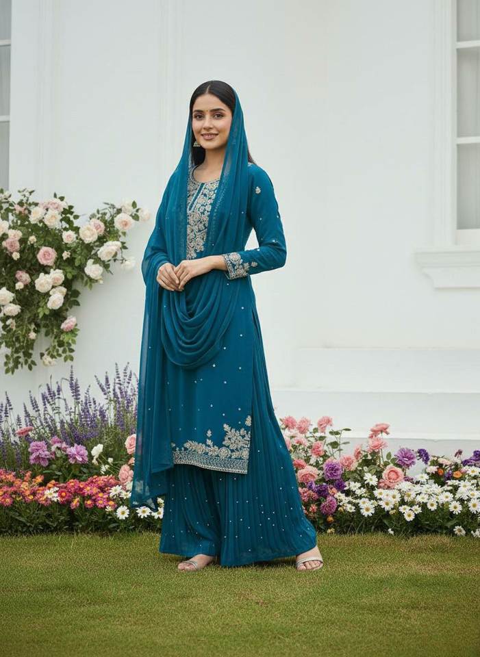 Conjunto de Salwar Kameez con Dupatta, de corte recto, con bordado multicolor y detalles de espejo, exquisitamente diseñado, para bodas.