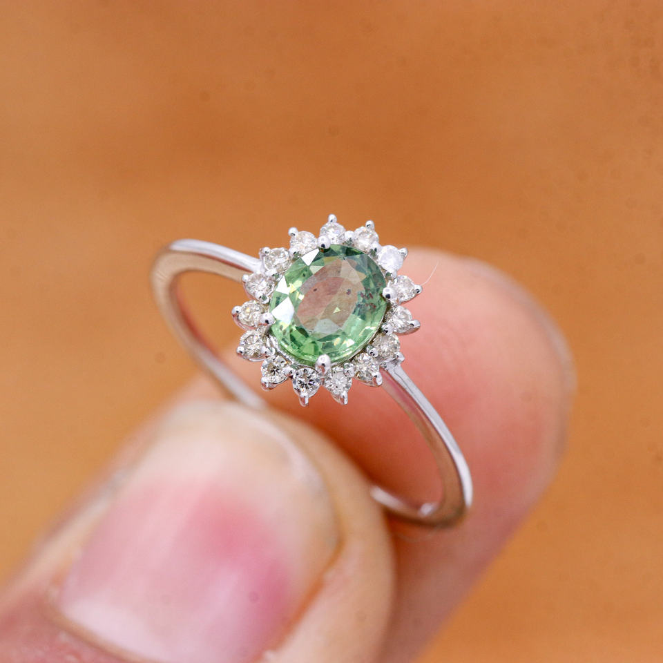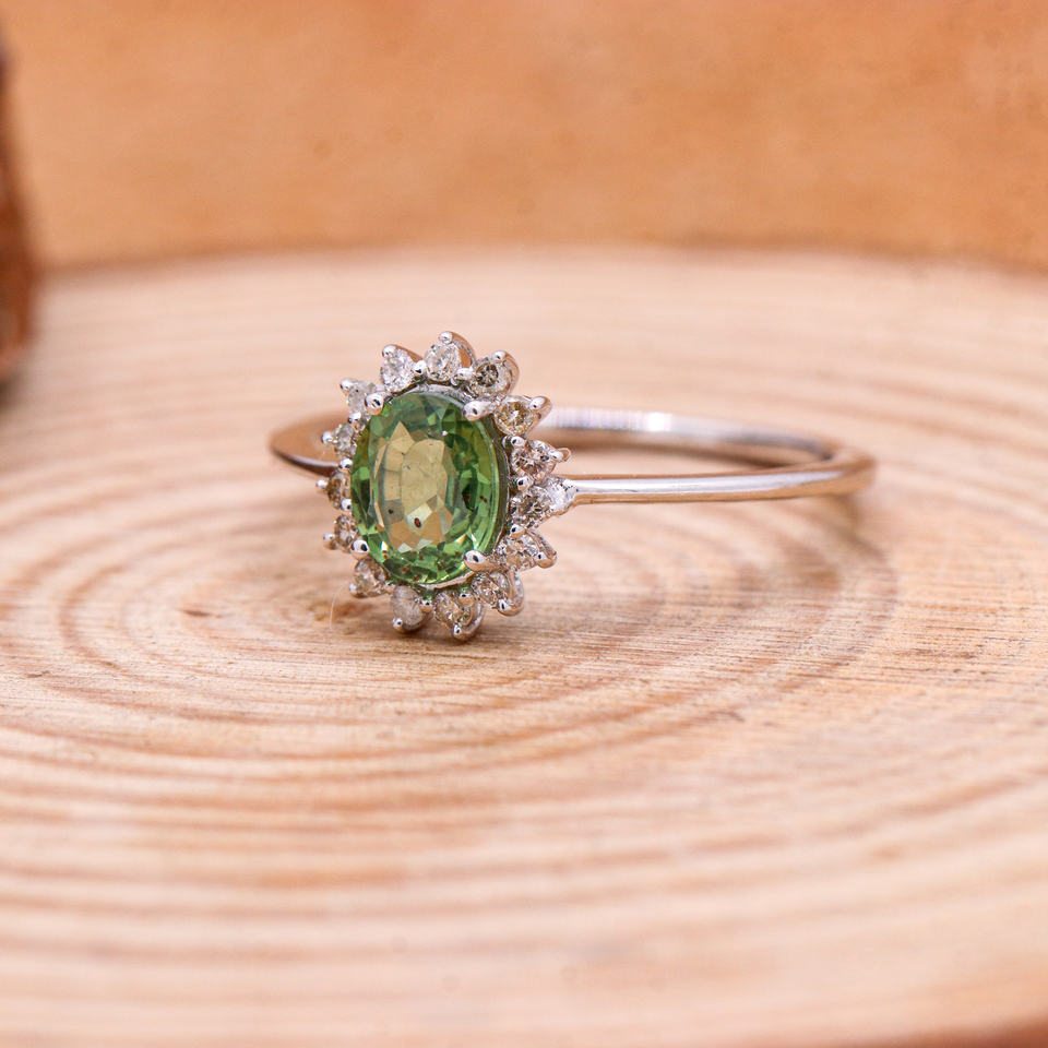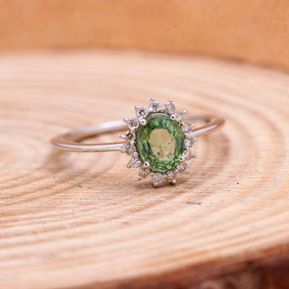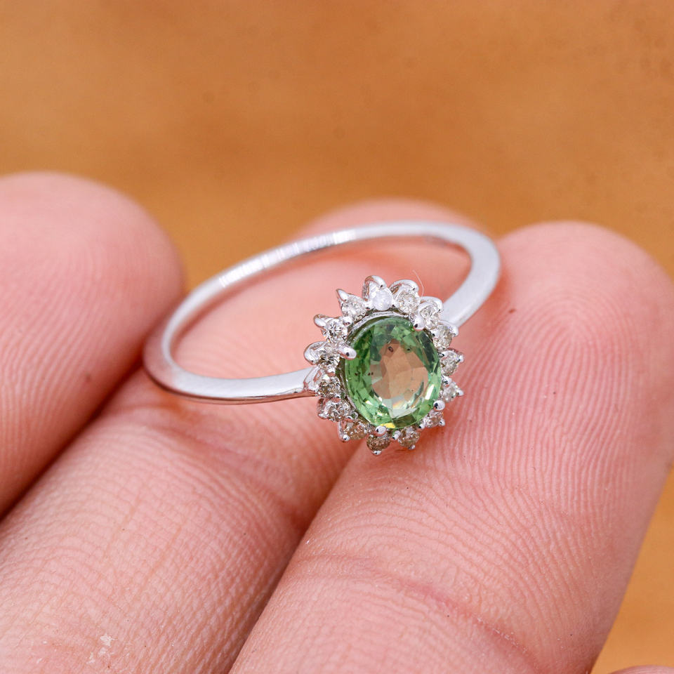 Nombre del elemento:Diamante y zafiro verde 925 anillo de plata