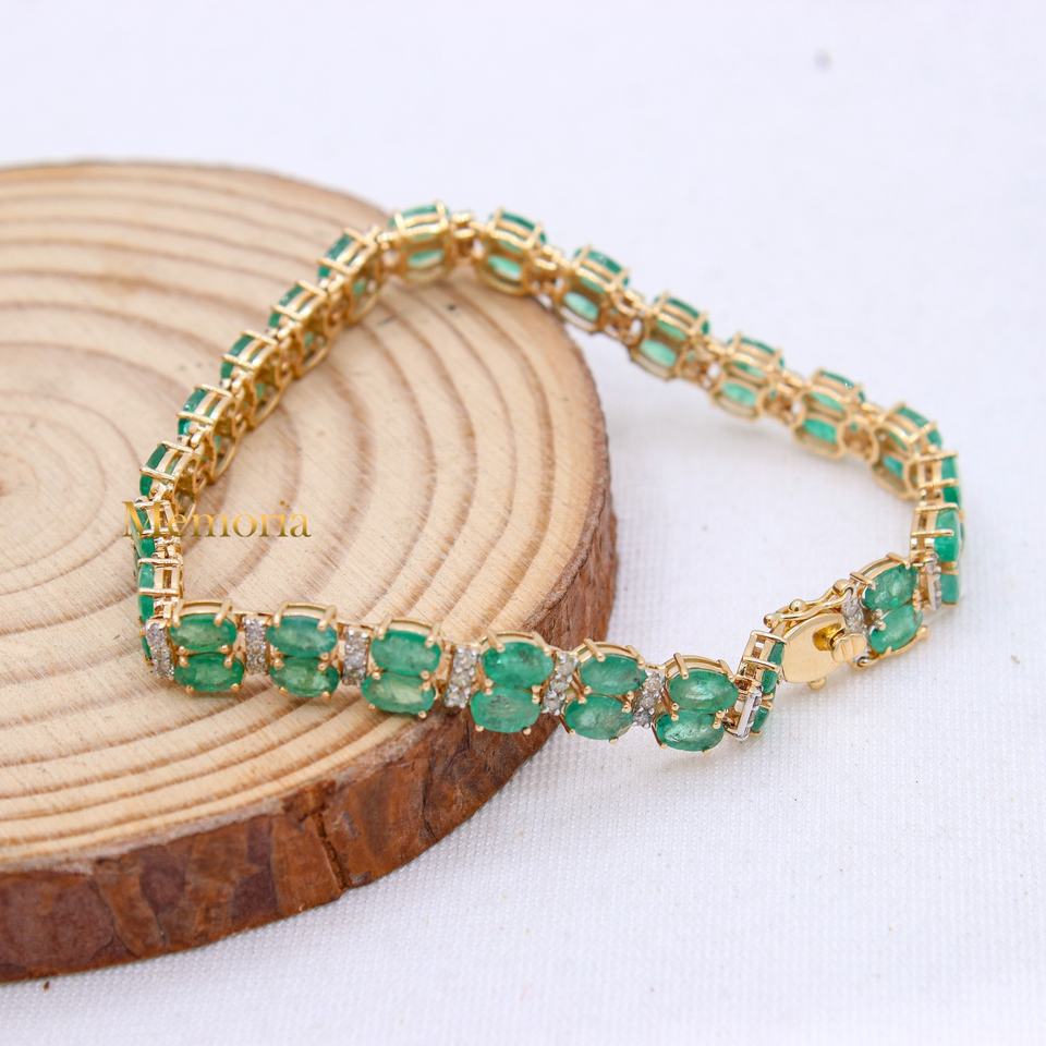 Nombre del elemento:Esmeralda y Diamante 14K Oro Pulseras