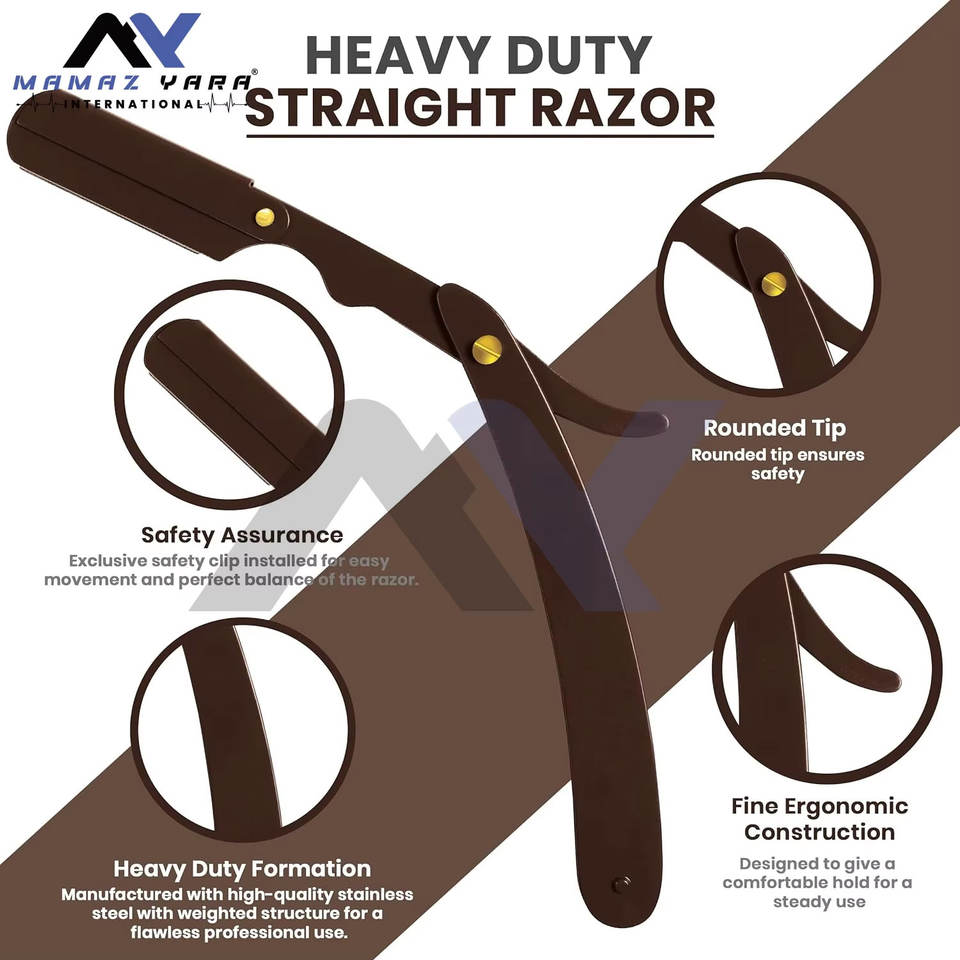 Navajas de Afeitar de Precisión para Barbería, Fabricadas en Fábrica, Bajo Precio y MOQs Bajos, Acabado Marrón Elegante, Aseo Excepcional