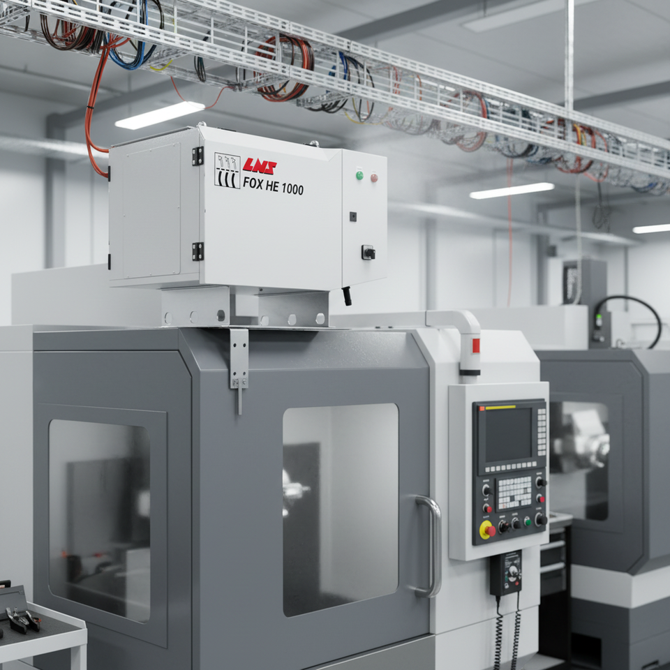 Colector de Niebla de Aceite Electrostático de Precisión para Máquinas CNC, Separador Purificador Fox HE 1000 para Tornos CNC y Centros de Mecanizado CNC
