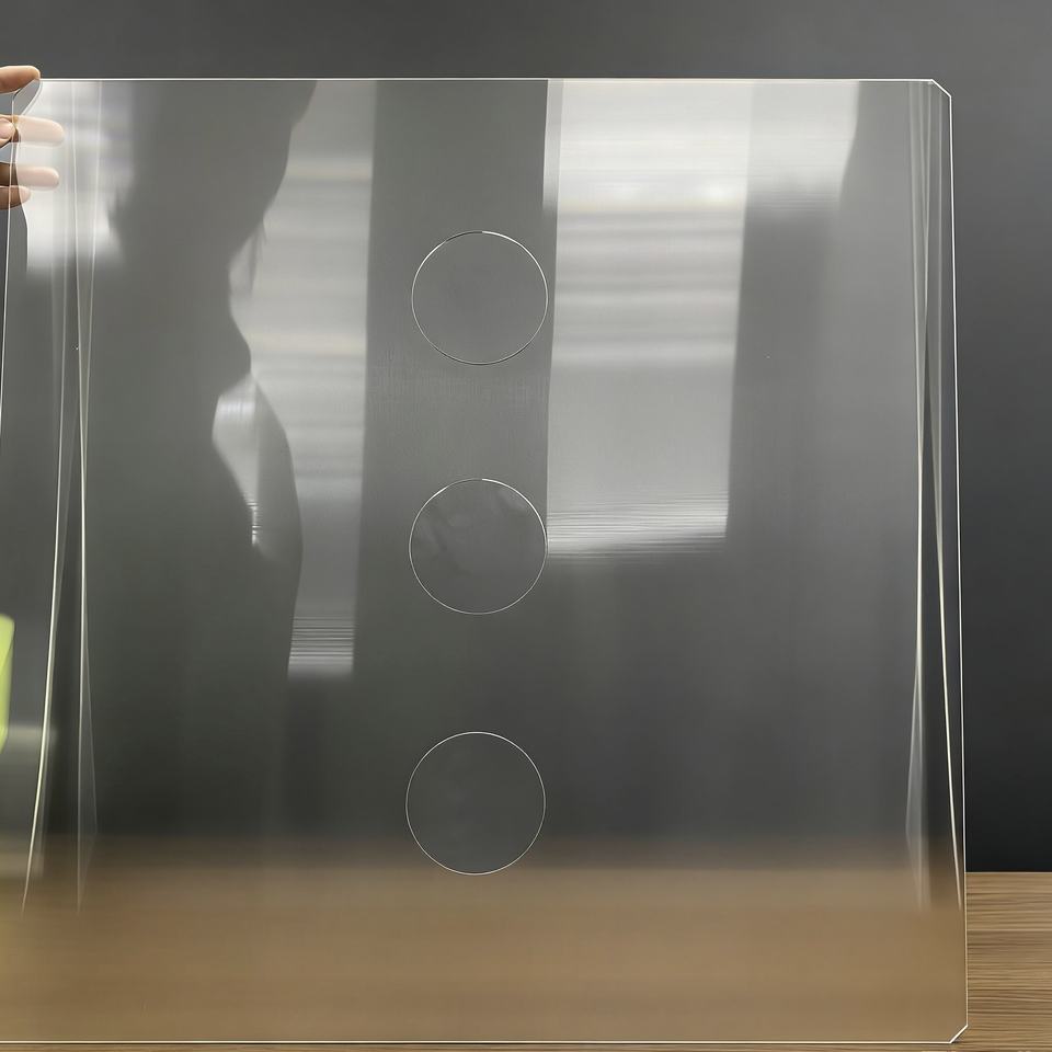 Placa guía de luz PMMA perforada de precisión, tamaño, forma y posición de orificios personalizados para luz LED suspendida de oficina por Rina Tech