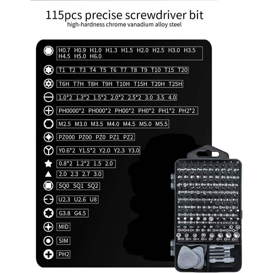 Kit de destornilladores de precisión de 115 piezas con puntas y herramientas para reparación de electrónica