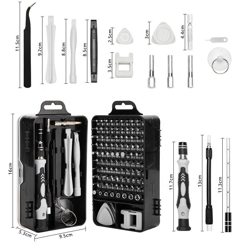 Juego de destornilladores de precisión con Torx Mini Gamebit Bits Tri-wing 115 en 1 Herramienta Herramientas Caja de reparación Reparación de hardware