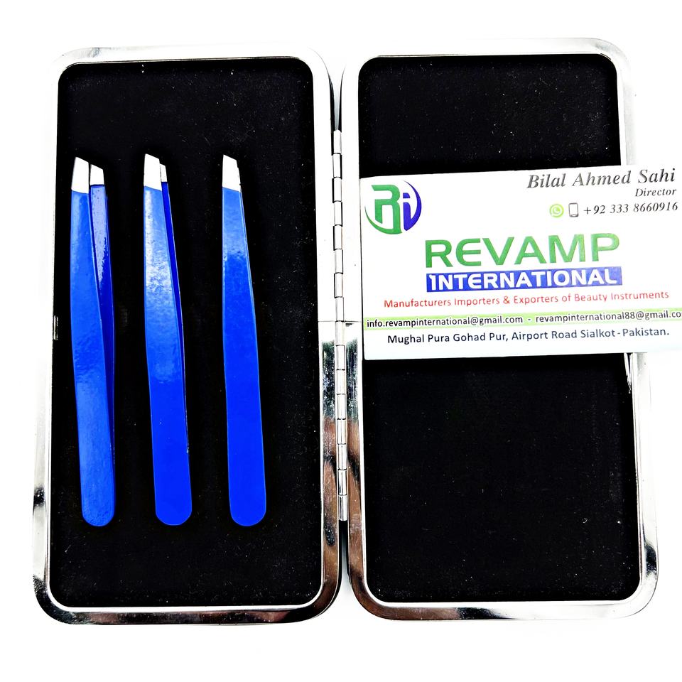 Pinzas de Cejas de Acero Inoxidable de Precisión, Duraderas y Ecológicas, con Punta Inclinada y Colores Personalizables para Tres Pinzas
