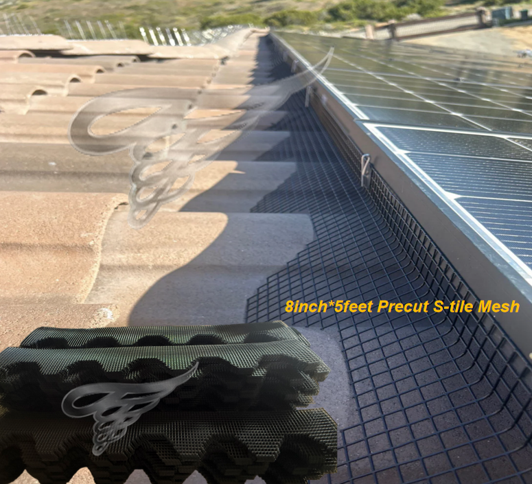 Kit de malla de panel solar de azulejo español precortado S-Tile-Protector de alambre resistente de 8 pulgadas x 5 pies para protección de aves y roedores