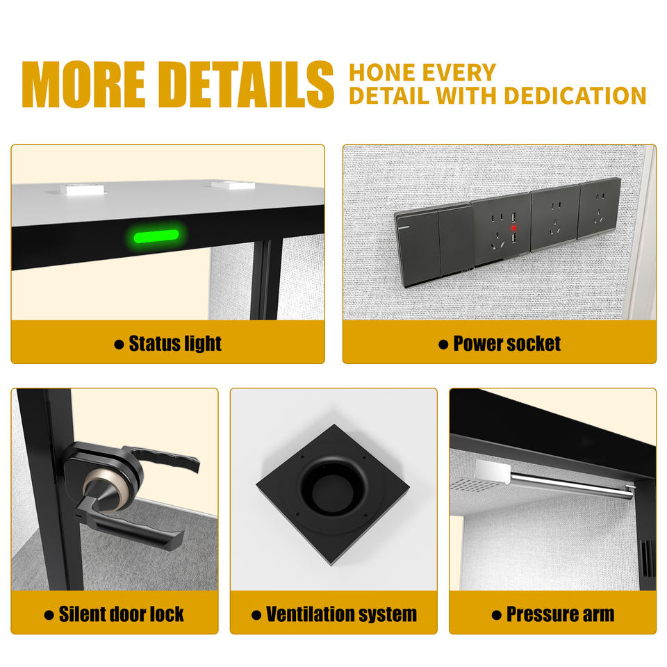 Rendimiento acústico STC35dB: Asegura un entorno tranquilo al reducir el ruido externo, ideal para trabajos concentrados o conversaciones confidenciales.