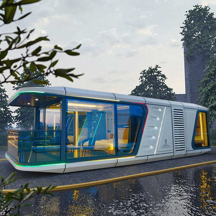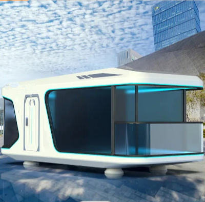 Casas de piscina de cápsulas prefabricadas Salón de paredes de vidrio templado Low-E incorporado para Villa Oficina Material de panel sándwich duradero