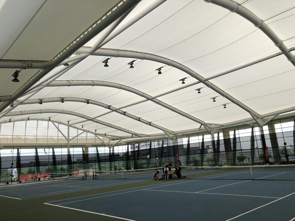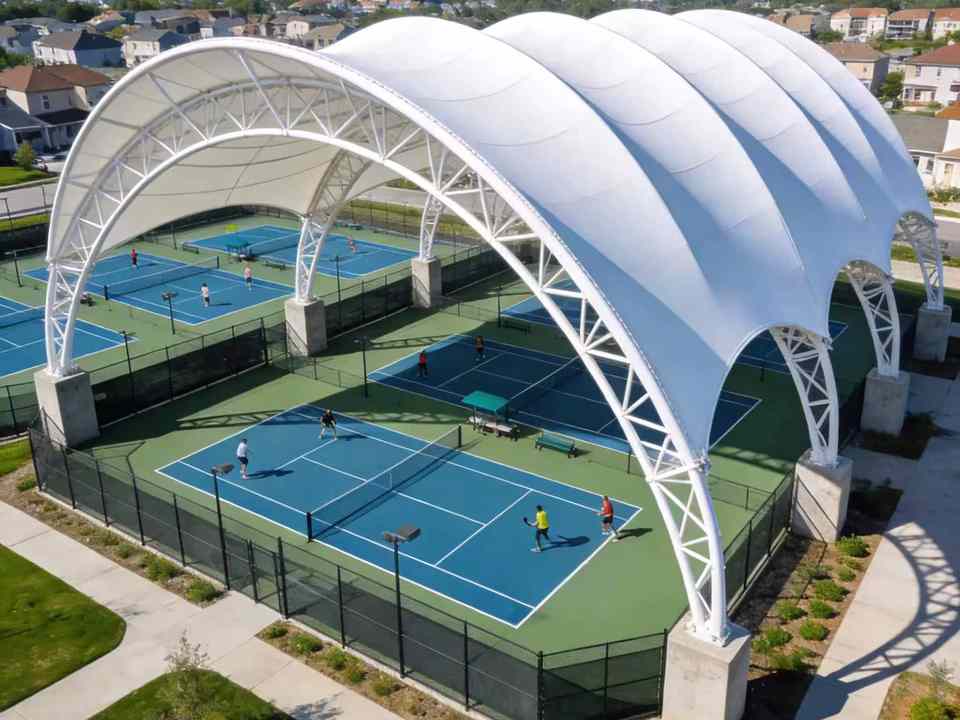 Cubierta de Membrana Tensada Prefabricada de Gran Envergadura, Estructura de Tela PVDF, Techo Exterior para Pista de Pádel/Plaza