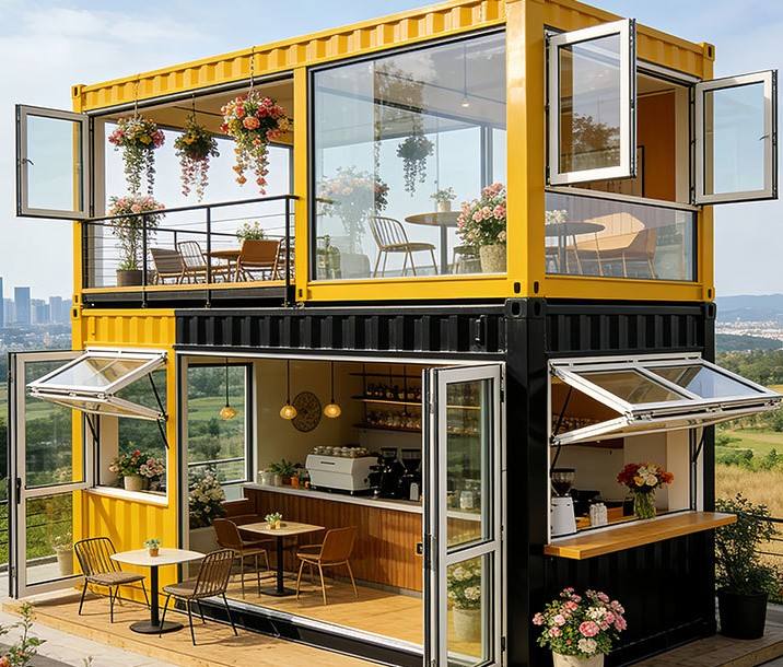 Casas Modulares Prefabricadas, Unidades Múltiples, Paneles Sándwich de Acero para Exteriores, Expandibles, Transpirables, para Cafeterías y Negocios de Snacks