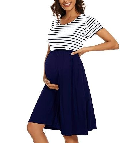 Vestido de embarazo de manga corta Casual Home OEM Ropa de maternidad Vestido de enfermería para amamantar Embarazo de lactancia