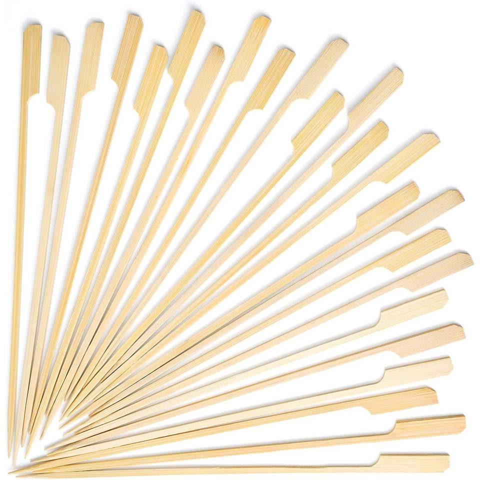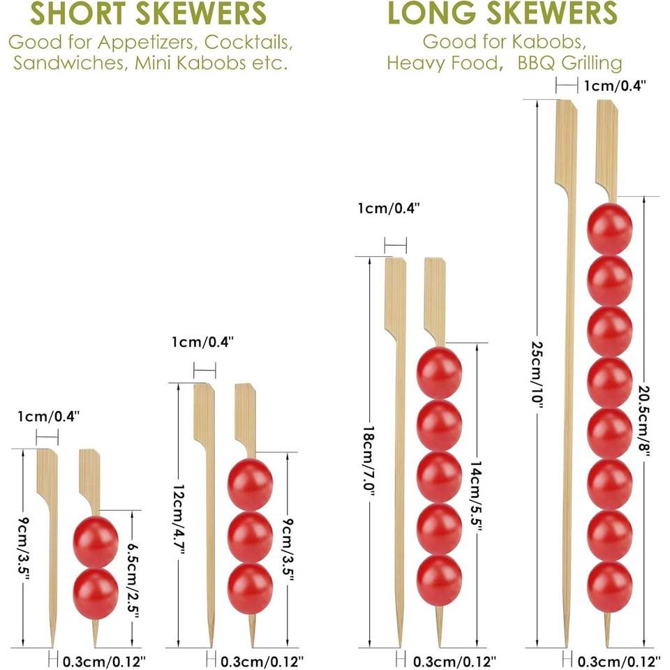 Brochetas de Bambú Premium de 10 Pulgadas, Palitos de Madera Largos de 3mm de Grosor para Asar a la Parrilla y Barbacoa, 100 Unidades