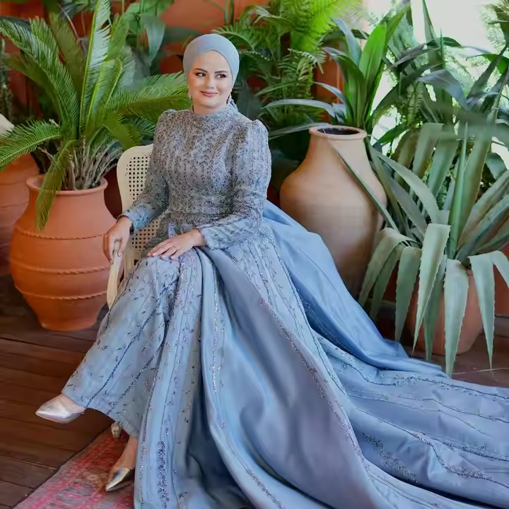 Premium 100% seda satén modesto vestido de fiesta de noche diseñador Vintage moda artística marroquí-bordado inspirado en Turquía