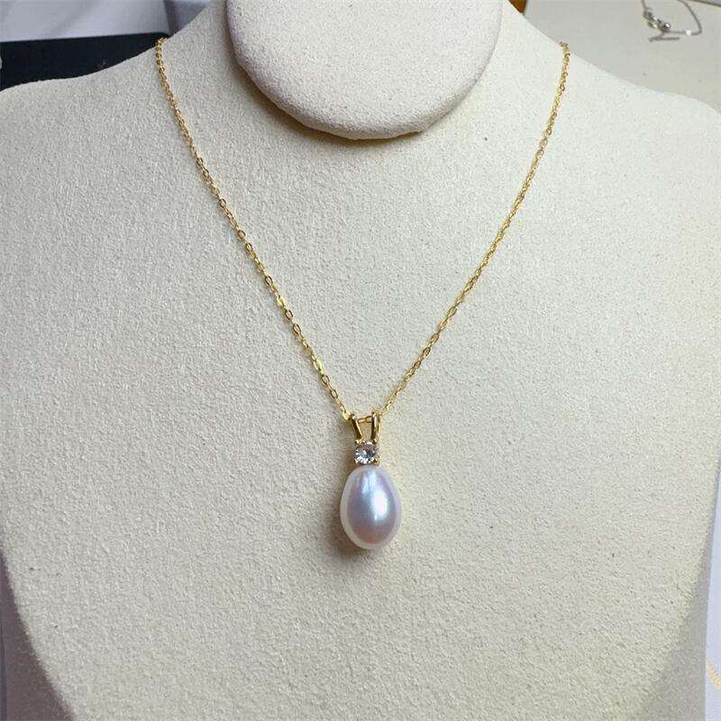 Colgante de Perla Redonda de Primera Calidad de 11-12 mm, Color Oro Miel, Impecable, con Perlas Reales, Cadena de Oro y Plata Natural, Regalo para Amantes de las Perlas