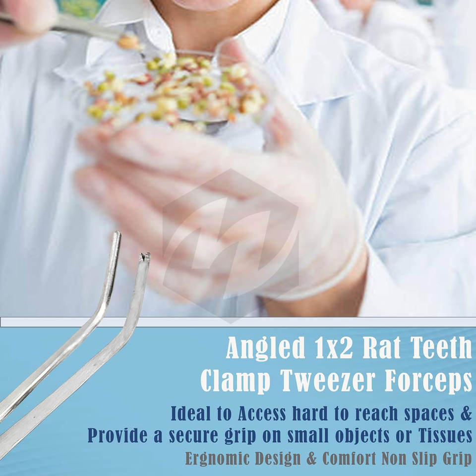 Fórceps de pulgar de tejido de disección en ángulo Premium de 12 pulgadas, pinzas de laboratorio multiusos, 1x2 dientes de rata y instrumentos médicos Kocher