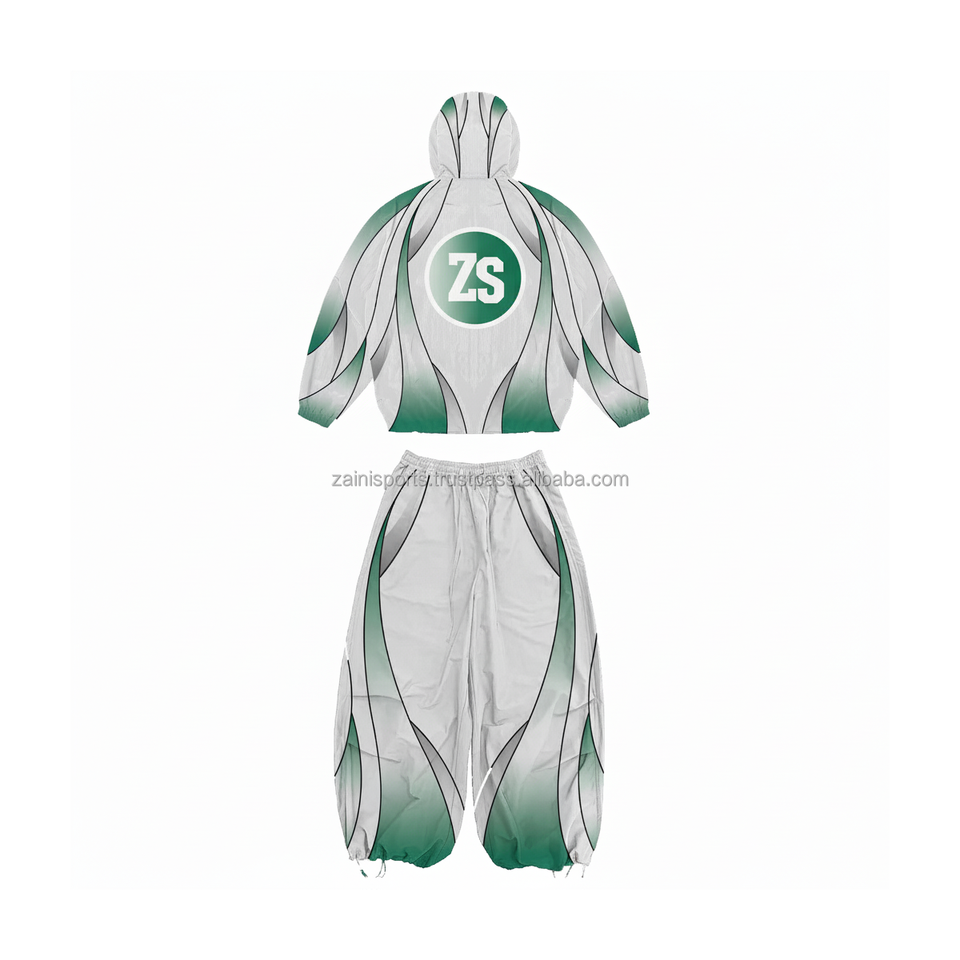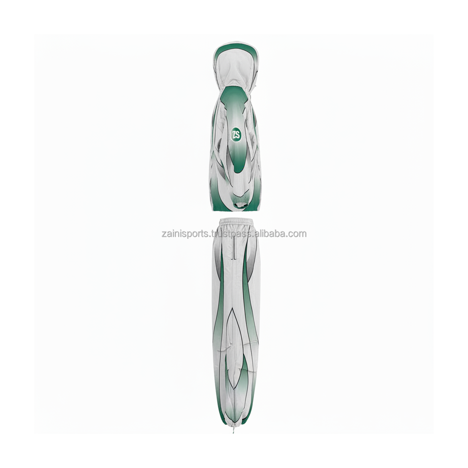 Conjunto cortavientos de poliéster GSM 130 Premium, tela impermeable ligera, paneles degradados verdes, Impresión de logotipo personalizado de talla grande