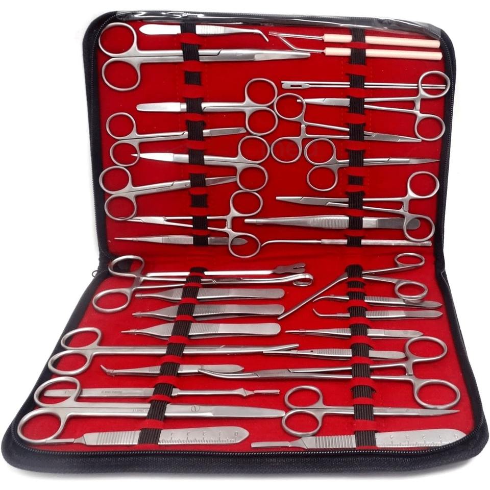 Kit de Instrumentos Veterinarios Premium de 157 Piezas, Tijeras, Pinzas, Portaagujas, Mango de Bisturí, Acero Inoxidable, Todo en Uno