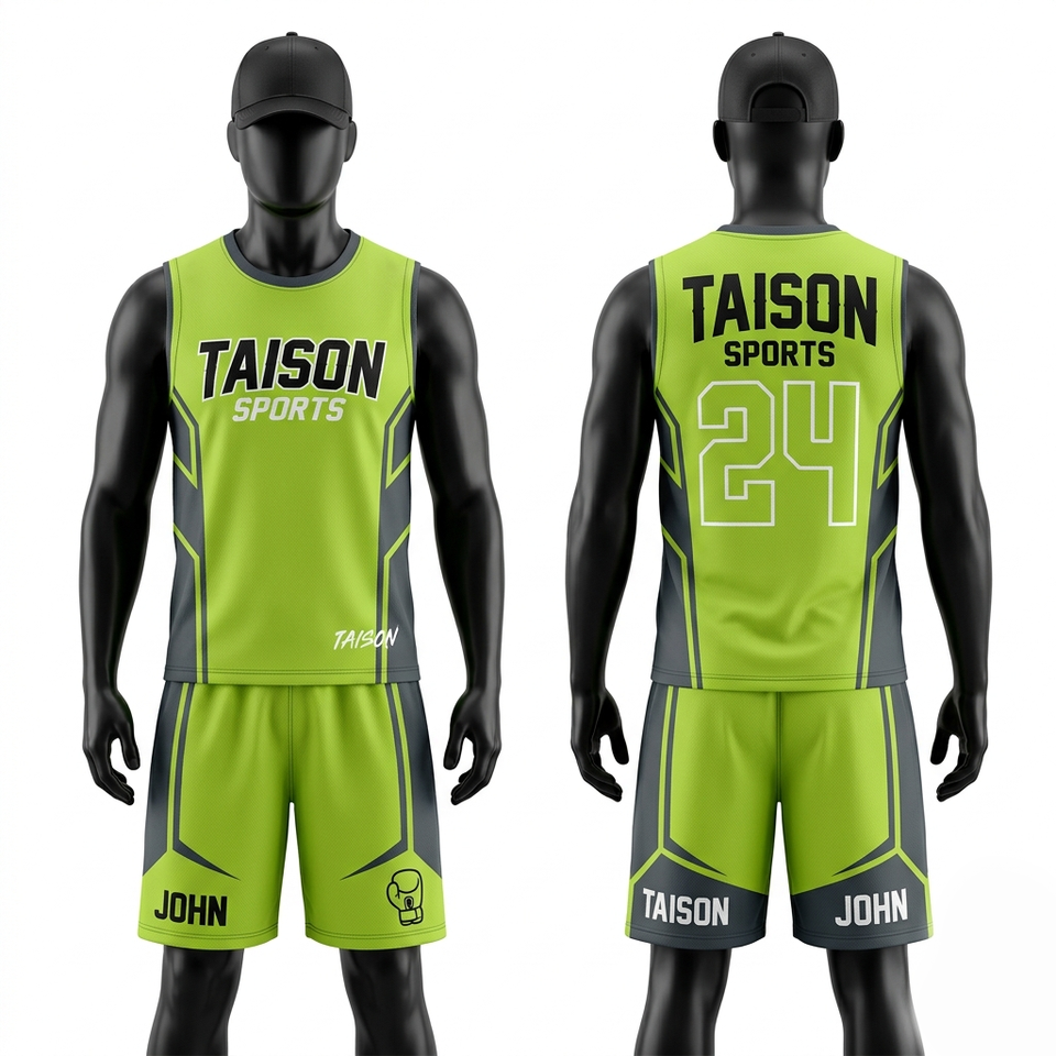 Premium 180 GSM Polyester Mesh Boxing Uniform Olive Green Black Panel Breathable Custom Heat Transfer Logo