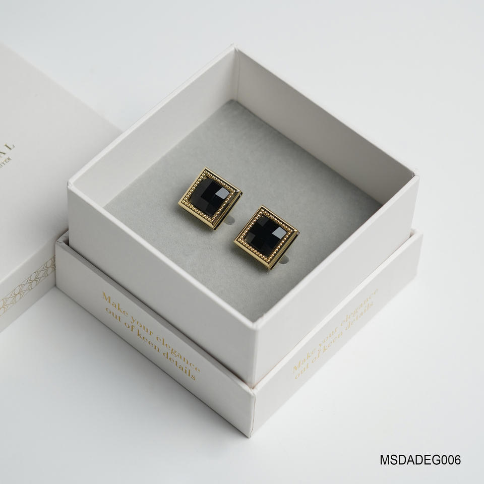 Mancuernillas de Meteorito Negro Facetado Fengshui para Hombre, Oro de 18K Premium - MSDADEG006 | Colección Tinh Vu | Vietnam