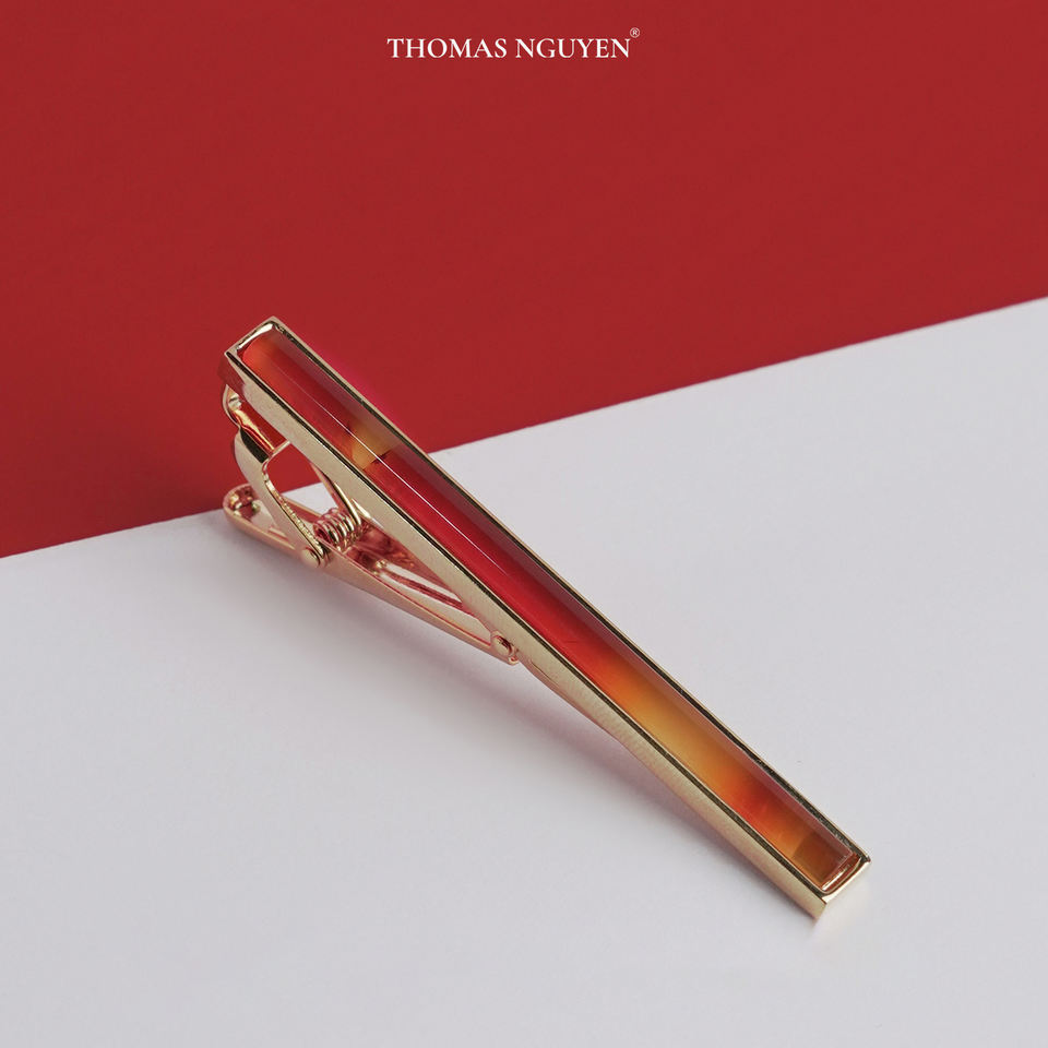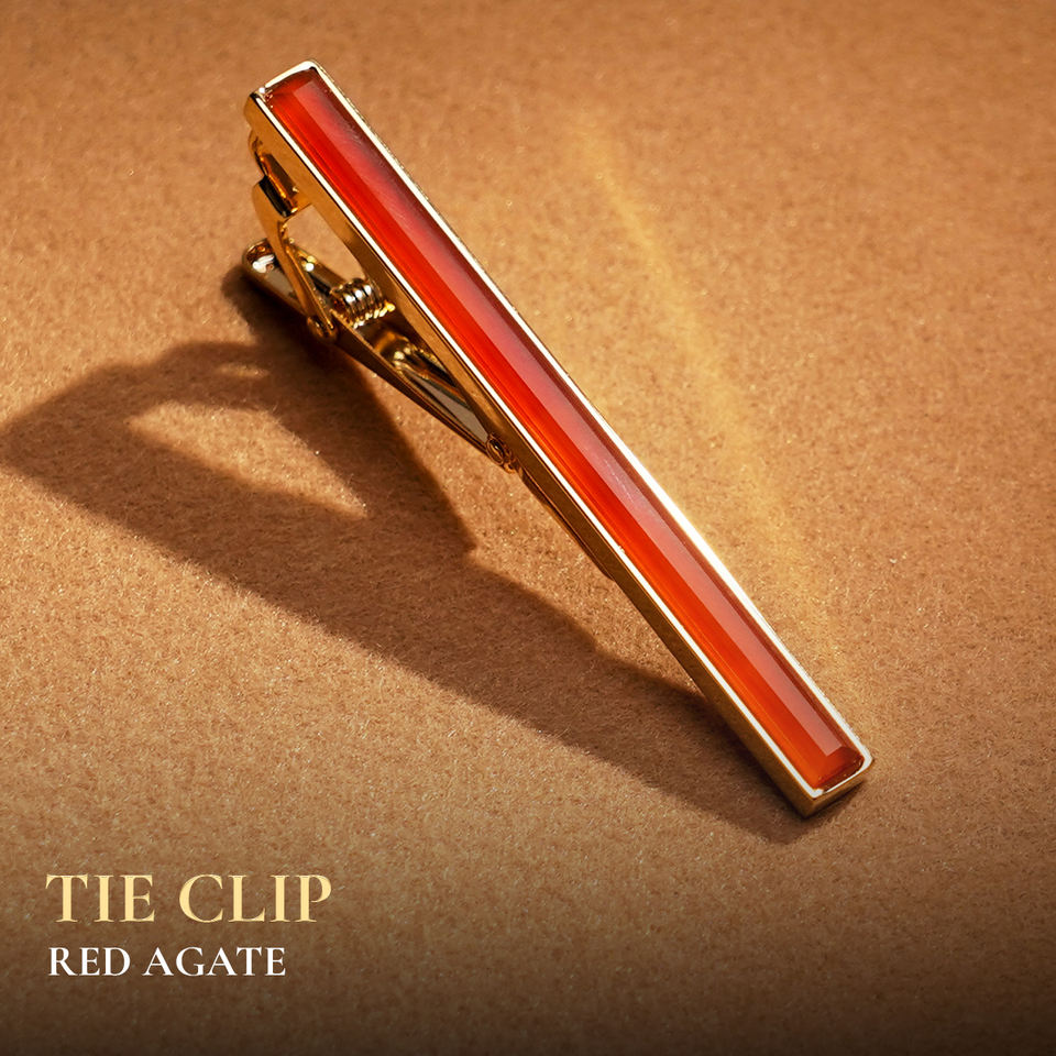 Clip de Corbata de Ágata Roja Fengshui para Hombre, Chapado en Oro de 18K de Primera Calidad - KCVDADO002 | Colección Tinh Vu | Hecho en Vietnam