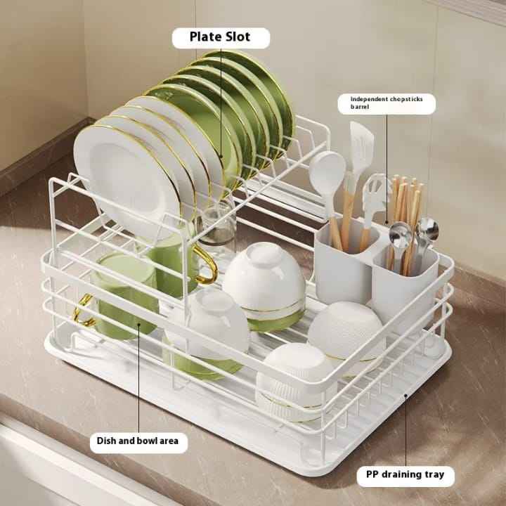 Escurridor de Platos Apilable de 2 Niveles, Moderno, de Acero al Carbono, Organizador de Cocina, Estante de Almacenamiento, Venta al Por Mayor