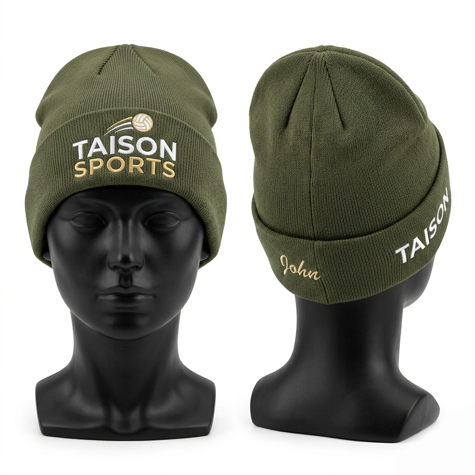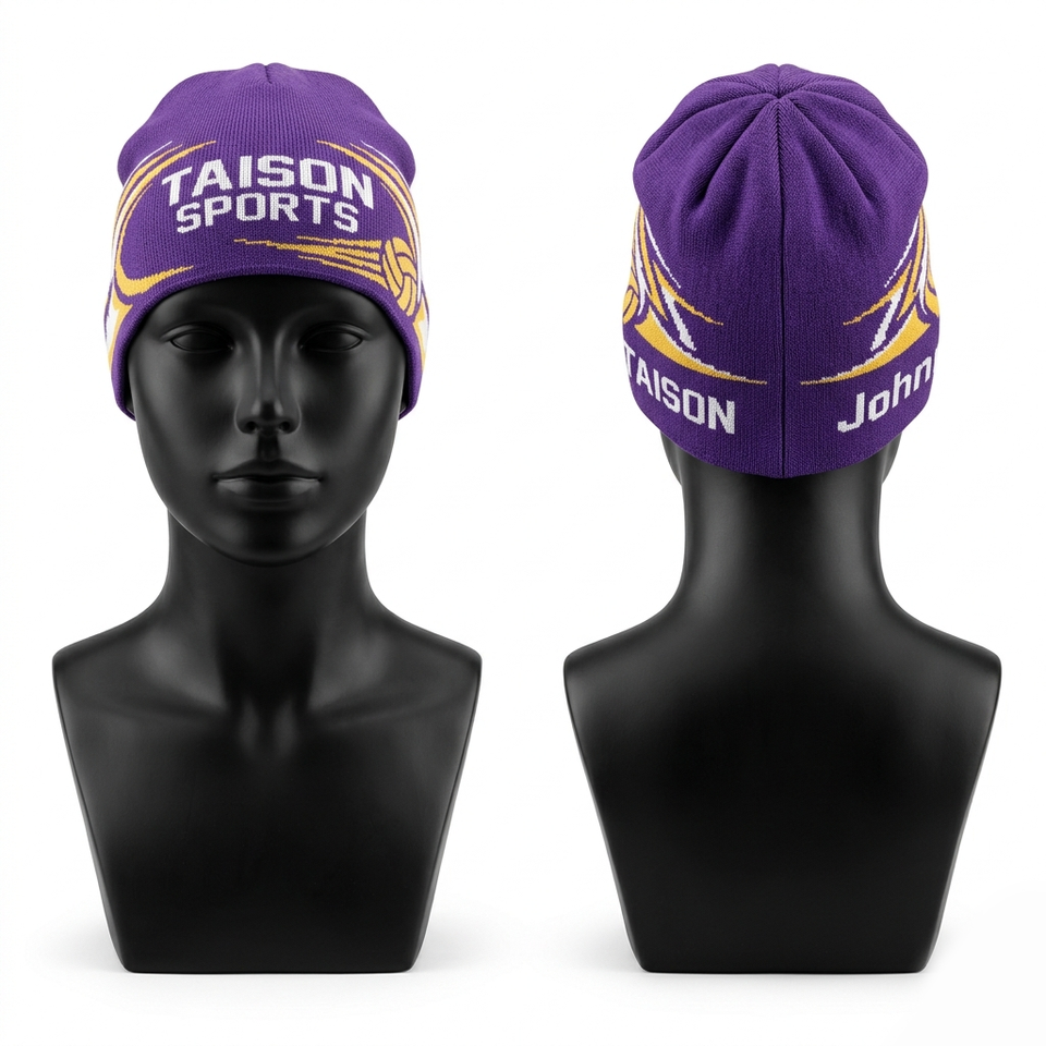 Gorro de Rugby de Punto Acrílico Premium de 320 GSM para Hombre, Azul Marino, Azul Claro, Rayas, Puño Plegado, Logotipo Bordado Personalizado