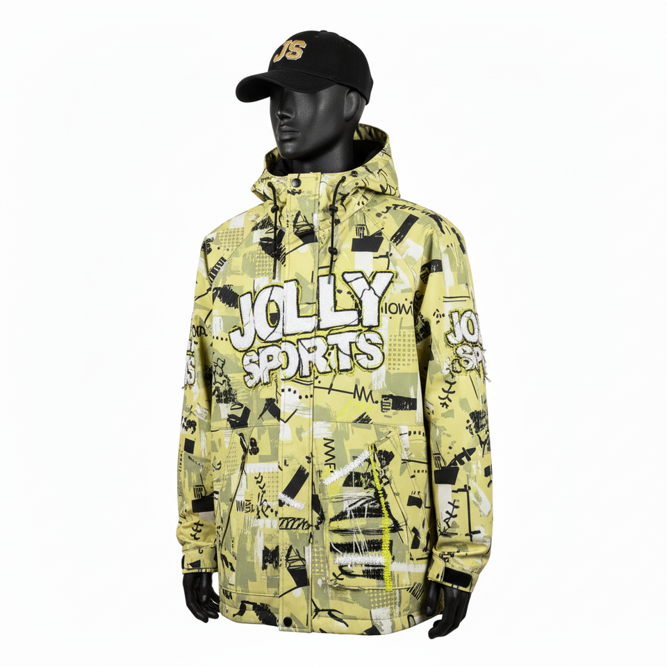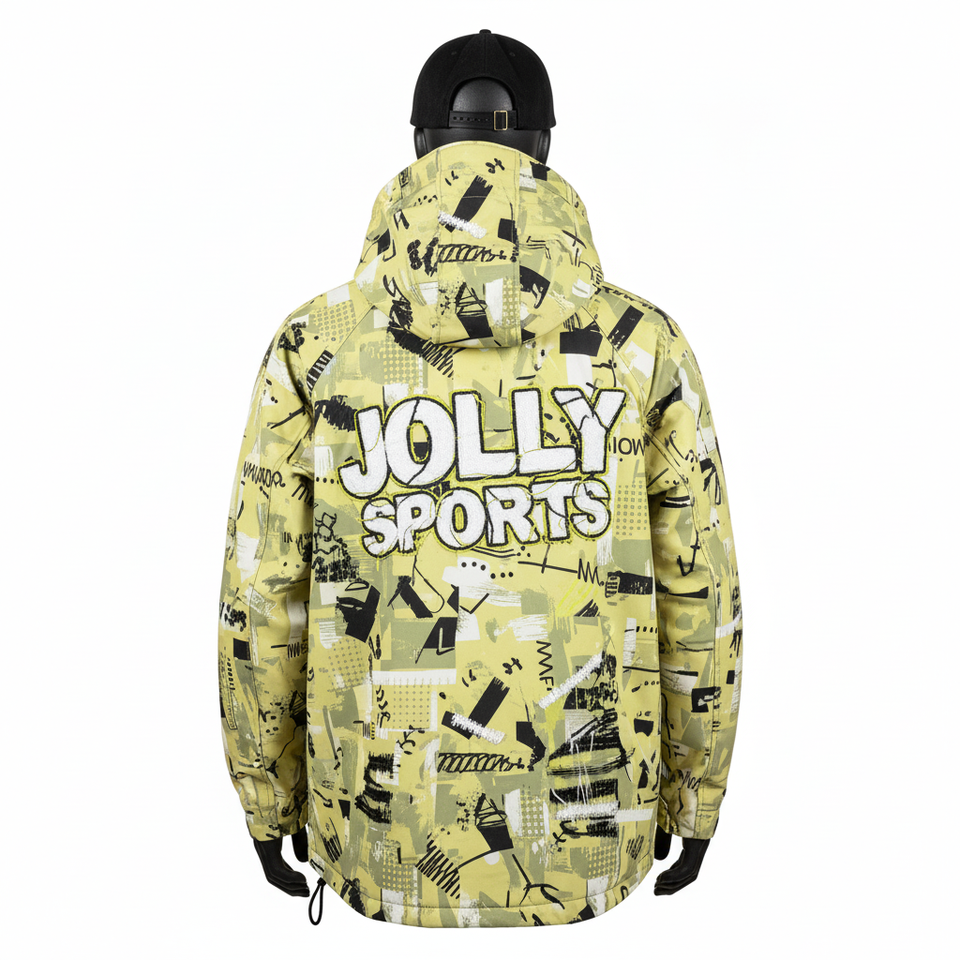 Chaqueta Softshell Premium para Hombre de 320 GSM en Tela con Estampado Artístico Amarillo con Paneles Frontales Múltiples y Chaqueta Softshell Personalizada para Hombre