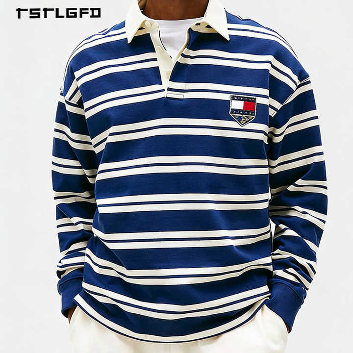 Jersey de Rugby de Punto Sólido de Algodón Peinado de 320GSM Premium para Bordado, Transpirable, Casual, de Manga Larga, Personalización de Alta Gama