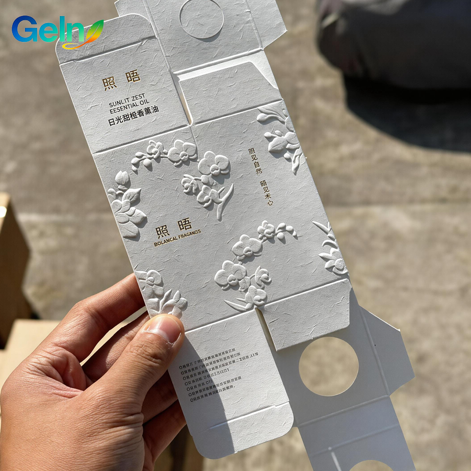 Caja Plegable Premium para Aceites Esenciales con Relieve 3D, Empaque de Papel Personalizado Integrado, Caja de Papel Ecológica para Aromaterapia