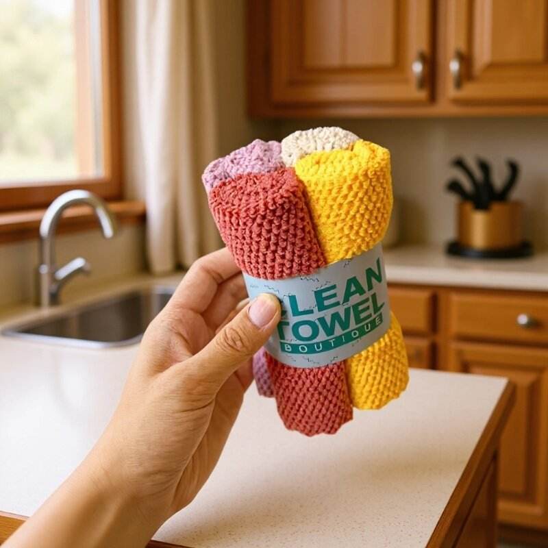 Premium 4 Pack Rice Grain Microfiber Cloths - 30x30cm Super Absorbent Glass & Dish Towels for Kitchen & Bathroom