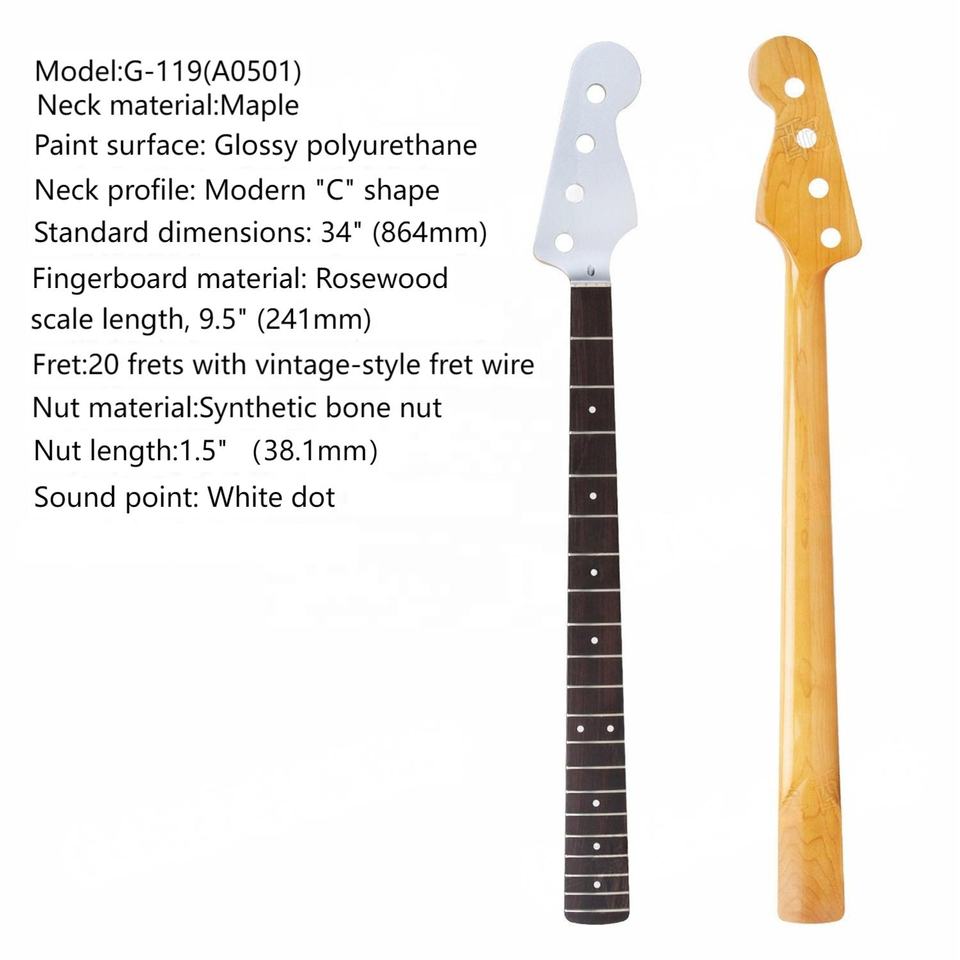 Mástil de bajo premium de 4 cuerdas y 20 trastes - Madera de arce y diapasón de palisandro, escala de 34 pulgadas para bajos PB/JB