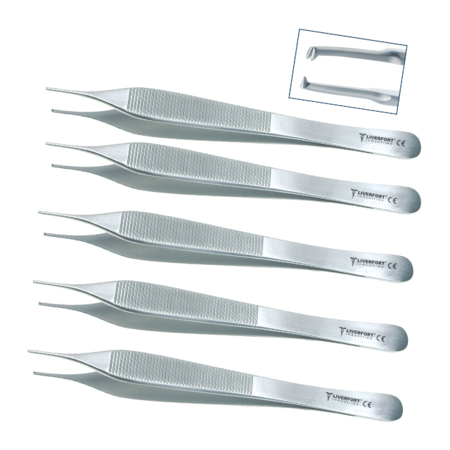 5 Pinzas Micro Adson 1x2 Dentadas 12cm